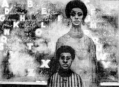 In addition to other images, certain words are written on the board in Cliff Joseph's painting, "Blackboard." |